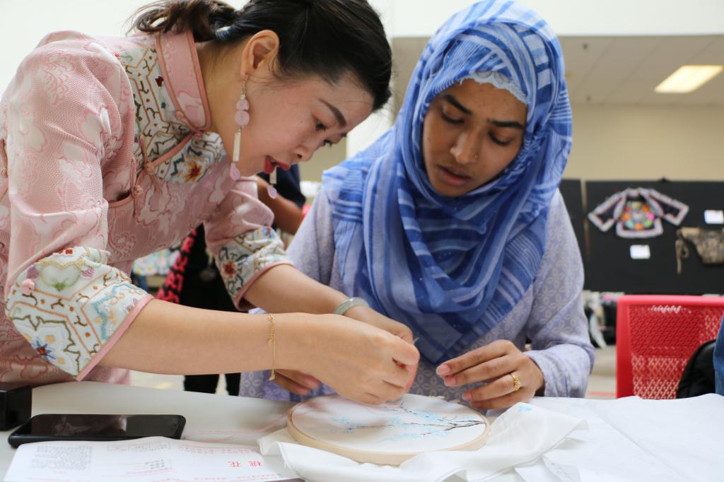 纺织服装学院副教授刘冬云、徐亚平的指导下,来自不同文化背景的海内外观者学习了不同的刺绣技法,体验到刺绣技艺的匠心与巧妙,更加直观的令海外受众能够感受到博大精深的中国传统文化。活动全程受到多方媒体与社会团体的密切关注,并对此次活动进行了详细的记录与宣传,对此次活动给予了极大的肯定。