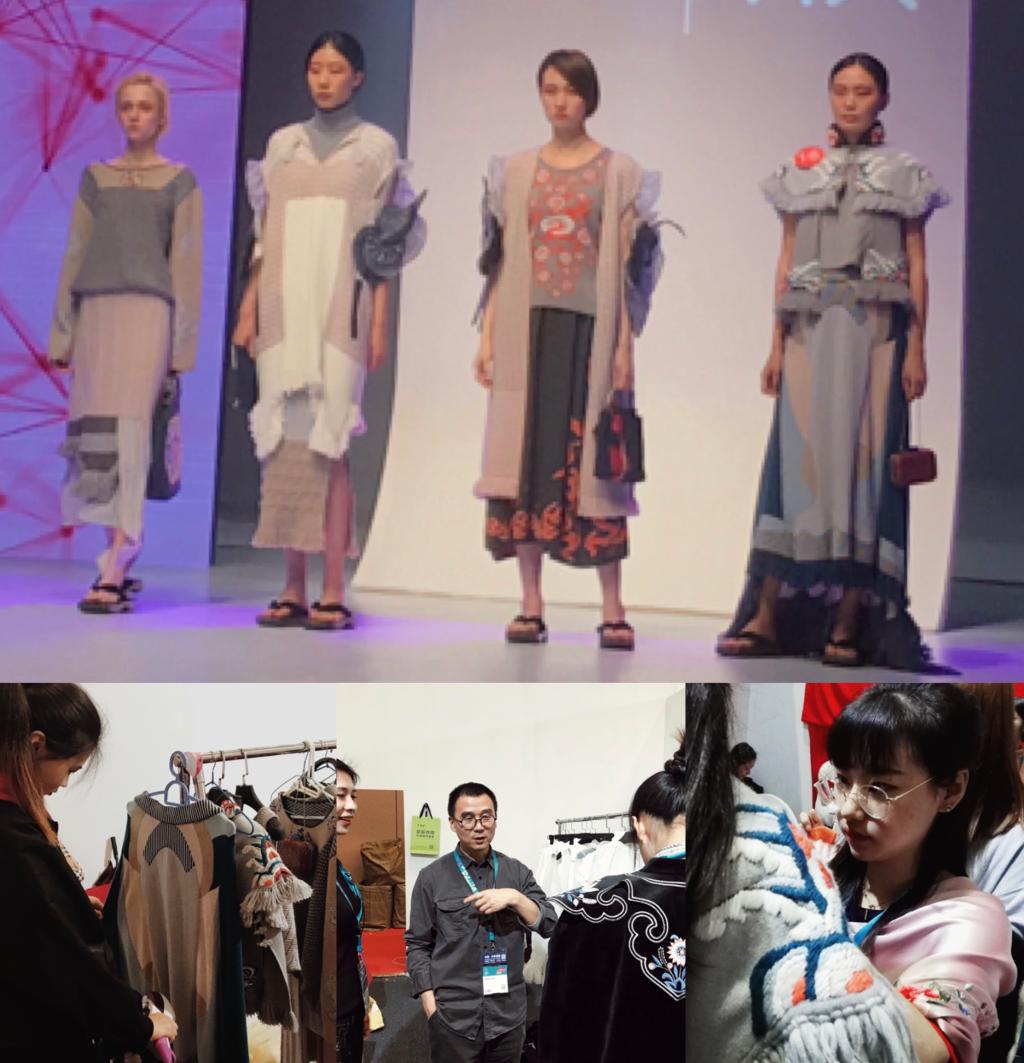 两位同学本着弘扬优秀传统服饰文化与创新实践的初衷,经过指导老师崔荣荣教授的悉心教导,以及在实践中的反复琢磨与推敲,最终呈现出传统服饰元素与现代针织织造工艺的完美结合,也为针织服装的艺术表现提供了更多的可能。