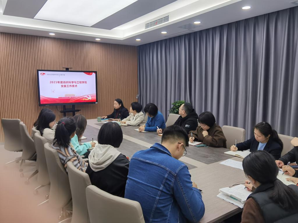 接着,张菁书记就学院党委2021年度工作要点向全体支部书记作了工作部署。张书记从扎实推进党的思想政治建设、全面落实立德树人根本任务、不断提升基层党建工作水平、坚定不移全面从严治党、切实做好统战群团工作五个方面描述了院党委今年的计划安排,并对支部标准化、优质化建设、加强宣传引导和意识形态研判等工作细节做出指导。张书记在工作中部署中重点介绍了“四史学习”“三亮三创”主题教育活动和“建党一百周年系列活动”等内容。学院党委为实施迎接建党100周年“百年行动”,面向全院师生党员开展“三亮三创”主题教育活动,“三亮”即:亮身份、亮承诺、亮成效,“三创”即创争先进位岗、创先锋模范岗、创先锋模范号,以此推进“两学一做”学习教育常态化制度化,巩固深化“不忘初心、牢记使命”主题教育成果,深化“支部名片”内涵,不断提高党组织的凝聚力、向心力、战斗力、执行力。学生党支部将以青春献礼建党100周年,分类组织“‘一、二、三、四’献礼建党一百周年”、“江南纺织‘一’心齐 共献百年建党礼”等系列主题活动,通过理论学习、知识拓展、实践升华逐步推进,不断增强学生党员的党性观念和宗旨意识,教育引导青年学子在学习生活的行动中践行初心和使命。