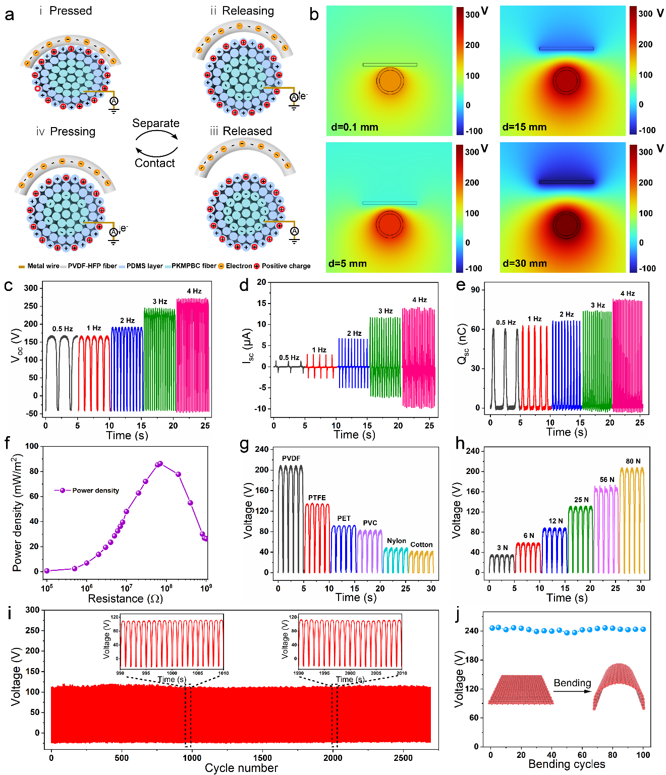图4:PKT-TENG的结构设计与摩擦电输出性能。