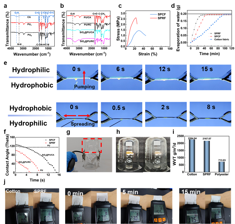 图5.多级梯度结构静电纺丝织物的协同热管理性能