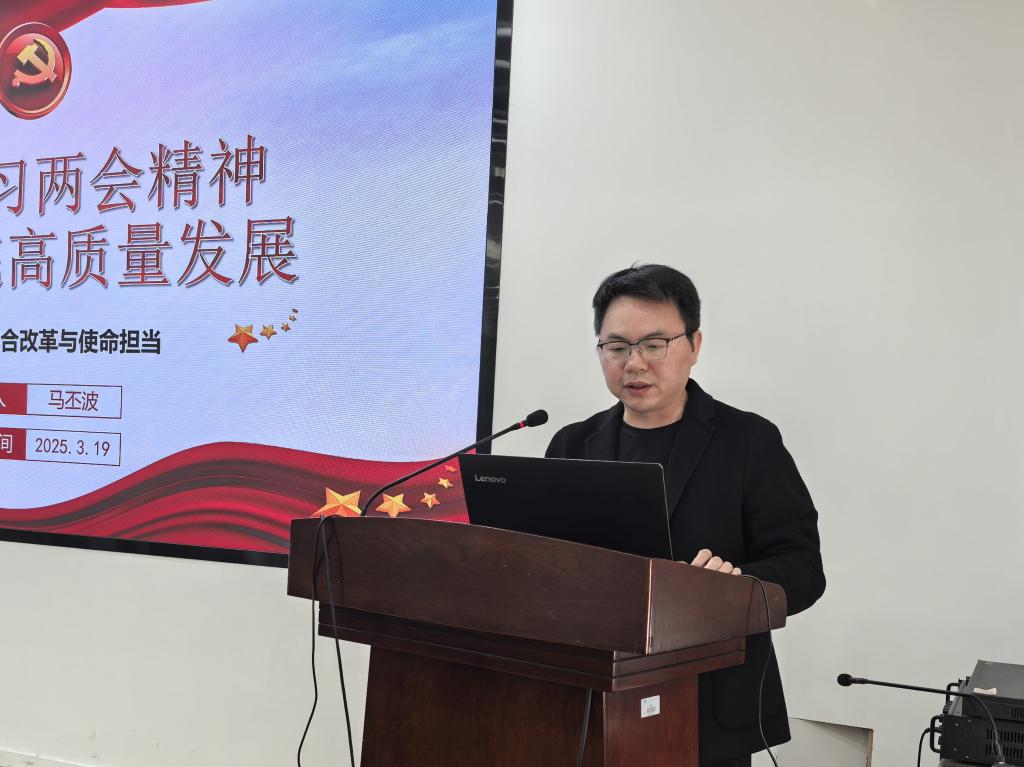 副院长马丕波以《深入学习两会精神推动学院高质量发展》为题,从2024年工作回顾、2025年政府工作报告要点、总书记今年两会金句等方面作了系统领学,并结合工作实际分享了自己的学习体会。