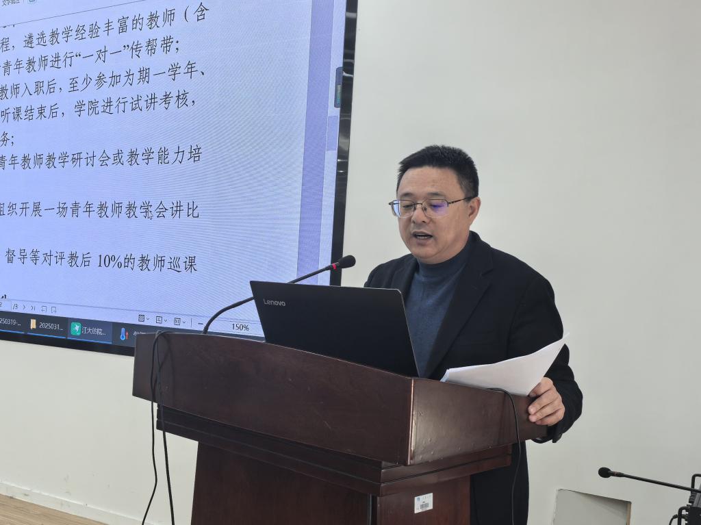 院长付少海围绕学院2025年度党政工作要点作工作部署。学院将全面贯彻全国教育大会和学校第五次党代会精神,围绕九项重点任务,奋力谱写国际知名、国内一流纺织学科建设新篇章。他还解读了学院青年教师能力提升计划,希望通过建制度、搭平台、强服务,助力青年教师更好更快成长。