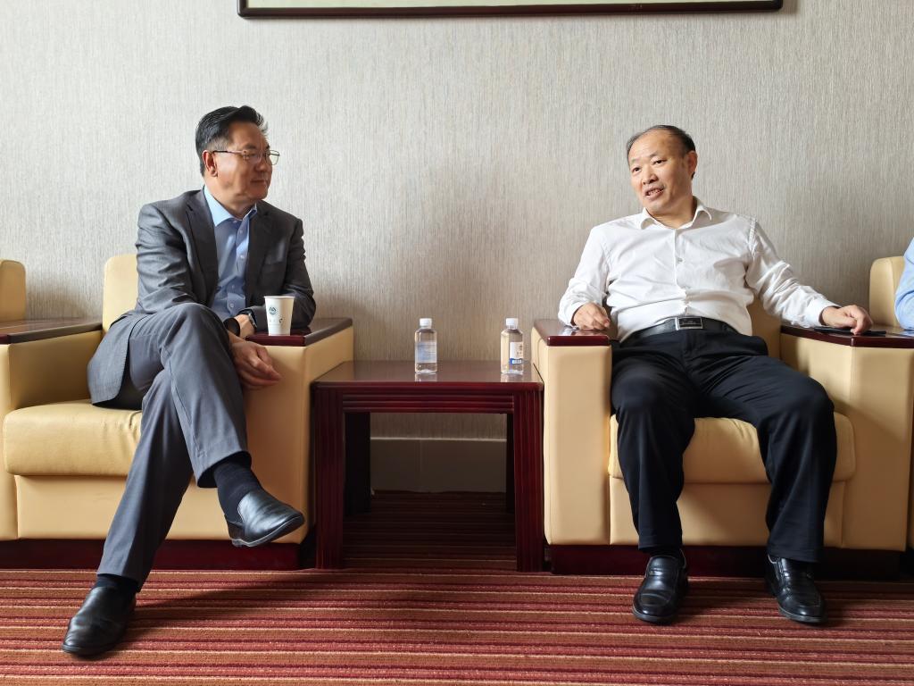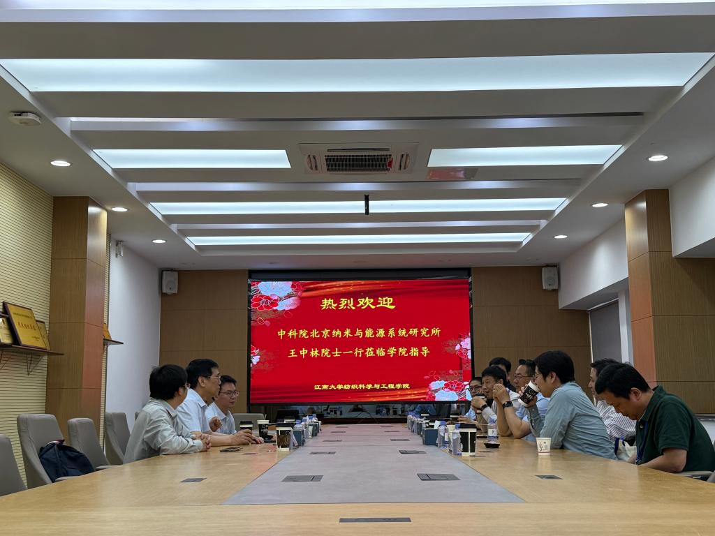 报告结束后,王中林莅临纺织科学院工程学院进行座谈交流。付少海从学科发展历史、师资队伍、科研团队等方面介绍了学院现状,分享了学院在搭建跨学科平台、推动成果产业化方面的实践经验,为未来深化合作提供了重要参考。随后参观了针织技术教育部工程研究中心,蒋高明介绍了智能纺织材料的最新研发进展,充分展现智能制造对传统纺织产业的革新力量。