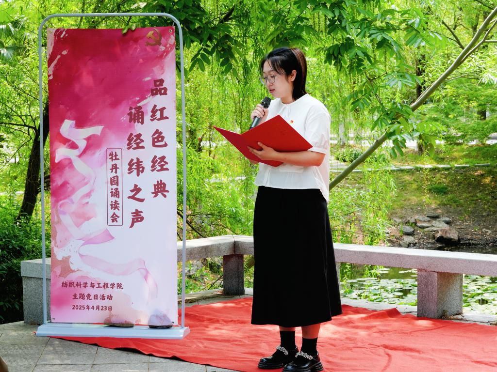 举办“品红色经典 诵经纬之声”牡丹园诵读会,学院各硕、博士党支部的30位党员代表参与活动。
