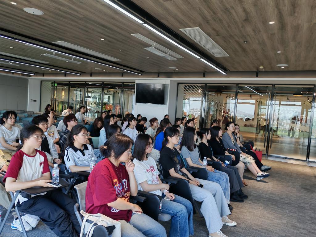 胡恺雯对训练营师生的到来表示热烈欢迎,并简要介绍了企业的全产业链布局以及人才需求情况。她着重指出,当前行业正加速向绿色纤维技术和数字化设计转型,创新创业需紧密契合“科技+时尚+可持续”的产业趋势,为同学们拓展了纺织创新的多维视野。