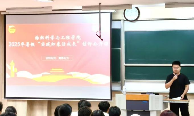 于第一教学楼1B103举办2025年暑假“实践归来话成长”信仰公开课。2025级本科生辅导员孙洲龙、2025年暑假社会实践各院级重点团队代表及2025级全体本科生参与此次活动,会议由学院学生会团委通讯社胡欣悦主持。