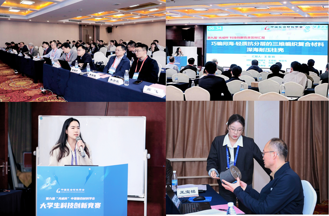 2025年10月24-25日,第九届“光威杯”中国复合材料学会大学生科技创新竞赛全国总决赛在成都落幕。我院先进纤维与纺织复合材料团队组建的研究生队伍(郑建华、王亚娟、杨莹雪、高年、程振宇),在张典堂老师指导下,自主完成了《巧编问海-轻质抗分层的三维编织复合材料深海耐压柱壳》项目,在决赛中表现卓越,最终荣获全国二等奖。