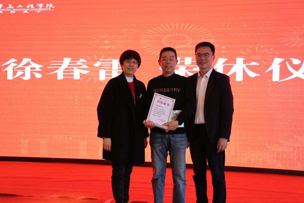 随后,院党委书记张菁燕主持了徐春雷、邓炳耀两位老师的荣休仪式。张菁燕逐一介绍了他们的职业生涯情况,并感谢他们对学院发展所做的贡献,书记、院长共同为两位老师颁发荣休证书,祝贺他们开启人生新篇章。