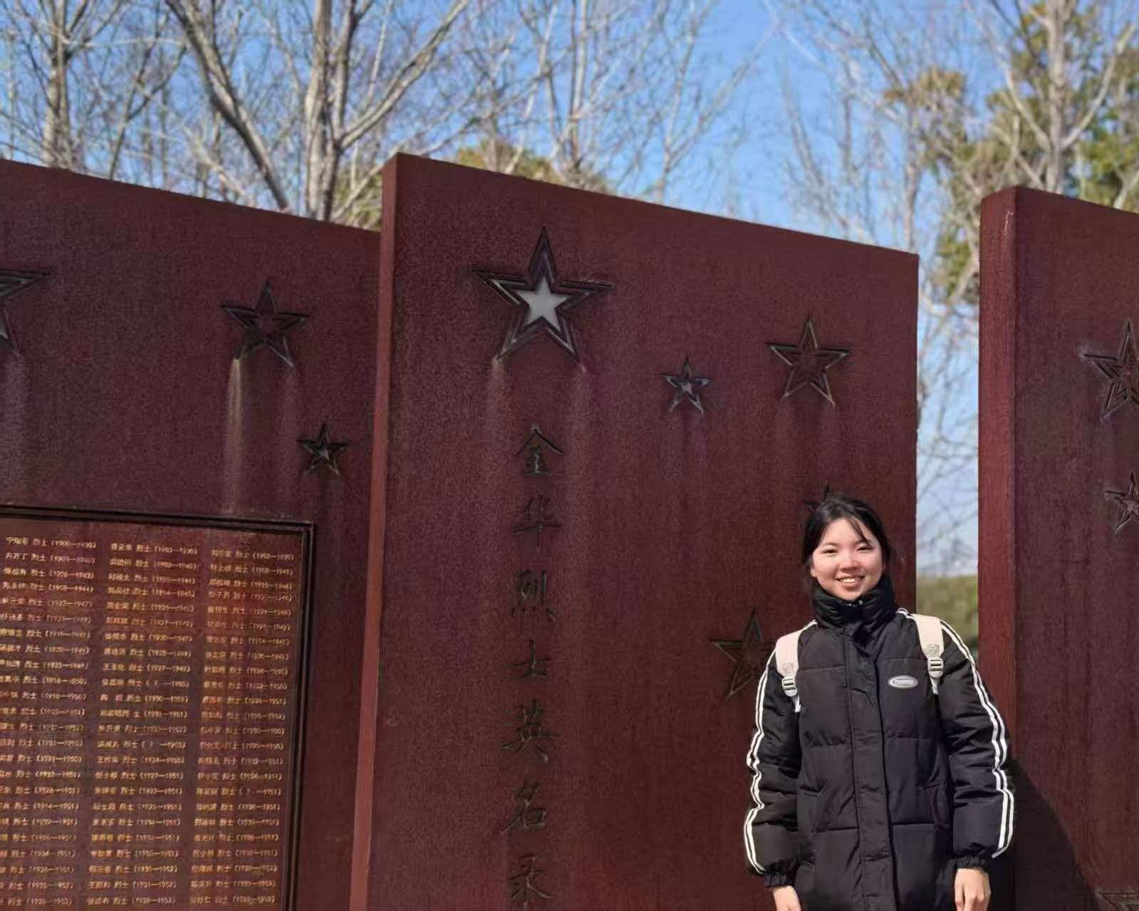 胡欣悦同学前往金华烈士纪念馆,在庄严肃穆的氛围中缅怀英烈、铭记历史。她从先烈们舍生取义、忠诚担当的精神中汲取奋进力量,更坚定了传承红色血脉的信念,立志以创新思维践行使命,将先烈精神与时代创新要求结合,用青春创新之力传承红色基因、续写时代华章。