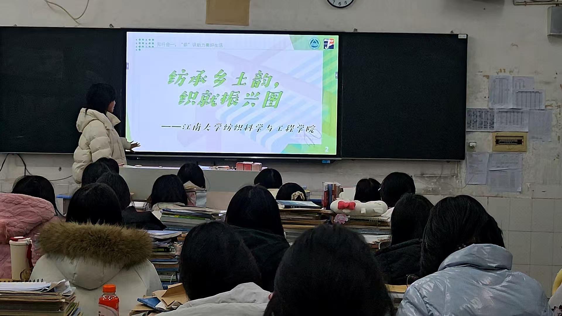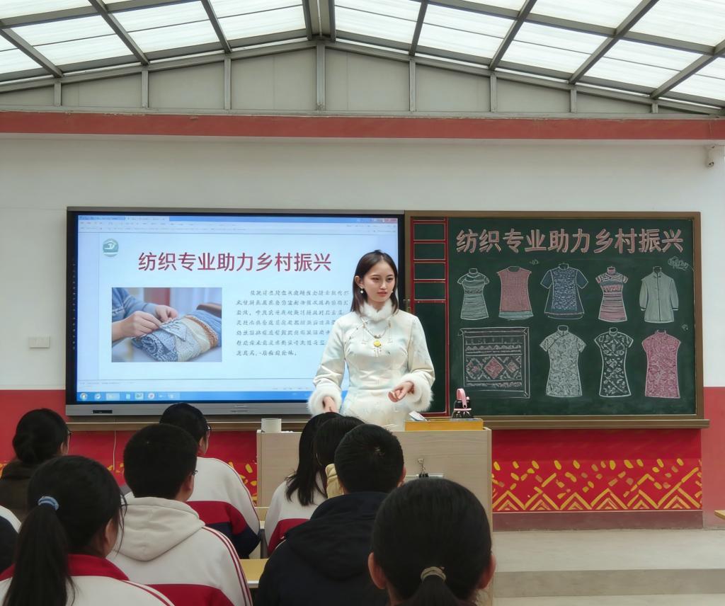 理雪娇、陈子悦和卢一硕三位同学分别前往各自家乡河南周口、湖南耒阳以及河北唐山的乡村学校,开展纺织专业知识宣讲活动,推动纺织专业知识与乡村振兴需求深度契合。宣讲内容从生活中的纺织常识、历史中的纺织发展,到日常衣着的纺织工艺、大国重器中的纺织应用,多维度普及纺织知识,在乡村孩子们的心中埋下纺织强国的种子。陈子悦同学在实践中深有感悟:“此次实践让我对助力乡村振兴有了更务实的理解。曾经觉得这是宏大的课题,总想做轰轰烈烈的大事,而这次在老区职高的宣讲经历让我明白,乡村振兴从来不是遥不可及的空谈,而是藏在每一个精准对接的行动里。”